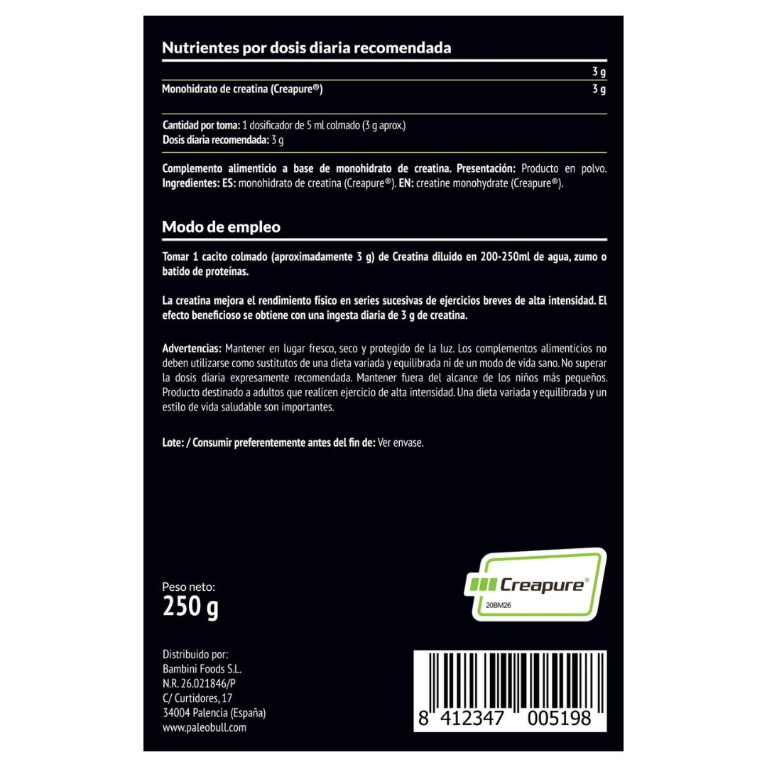 Ingredientes: Monohidrato de creatina Creapure®.
