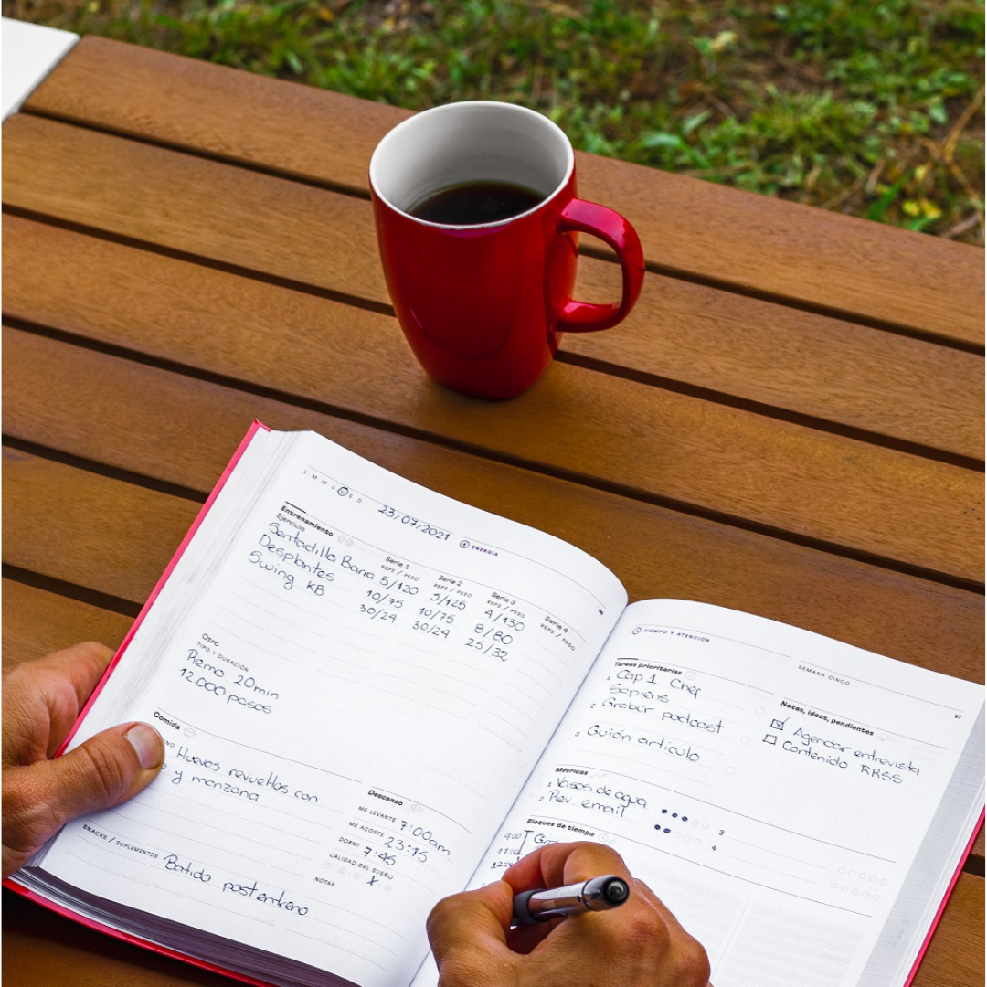 El Diario Esencial combina conceptos teóricos básicos con metodologías y técnicas probadas para mejorar tu productividad y tu salud. Te guía pero no te limita. Te ayuda a estructurar tu proceso de mejora pero te da suficiente libertad para adaptarlo a tus preferencias.